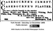 1890 W H Casebourne and Co., 49 St Paul’s Street, Leeds. Portland cement. Agents for Casebourne and Co Ltd of West Hartlepool (cement manufacturers) and John Howe of Carlisle (plaster manufacturer).[2]