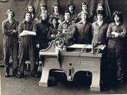 1848. 1876. 1882. 1895. 1899. August 1899. February 1901. January 1902. February 1911. Textile roller fluting machine displayed at Manchester's Museum of Science and Industry (MoSI). This cut the grooves (flutes) in the rollers used in cotton spinning machinesDetails of fluting machine. A batch of rollers was set up in the machine, and these were reciprocated to be machined by a cutting tool. The array of cutting tools is on the left. The ratchet wheels rotated the rollers ready for the next cut 1928. 1938. Apprentices renovating machine.