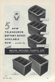 1954 British Moulded Plastics produced a battery case using Bakelite resin for the Bristol Aeroplane Co: Britannia to house Varley Dry Accumulators Ltd.[2]